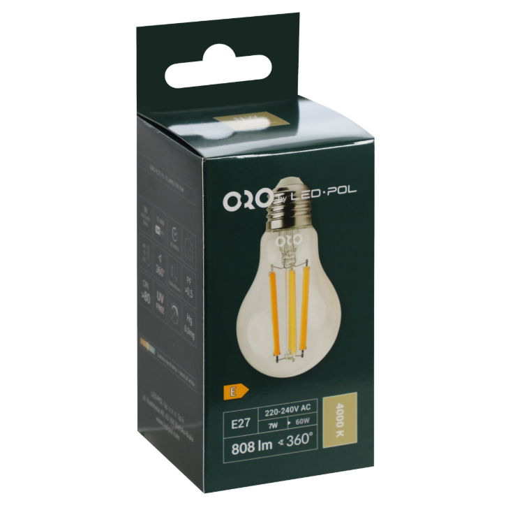 Żarówka ORO CLARO E27 A60 10,5W DW ORO04141 LED-POL łączy trwałość, energooszczędność i jasne światło dzienne, zapewniając komfort i wydajność w każdym wnętrzu.