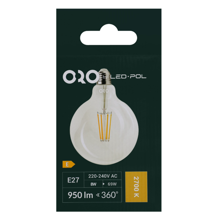 Żarówka LED ORO CLARO E27 G125 11W NW ORO33230 marki LED-POL to nowoczesne i energooszczędne źródło światła o dużej, kulistej bańce typu G125. Dzięki dekoracyjnemu wyglądowi doskonale sprawdzi się w otwartych oprawach, lampach wiszących oraz designerskich żyrandolach, gdzie żarówka stanowi również element dekoracyjny.