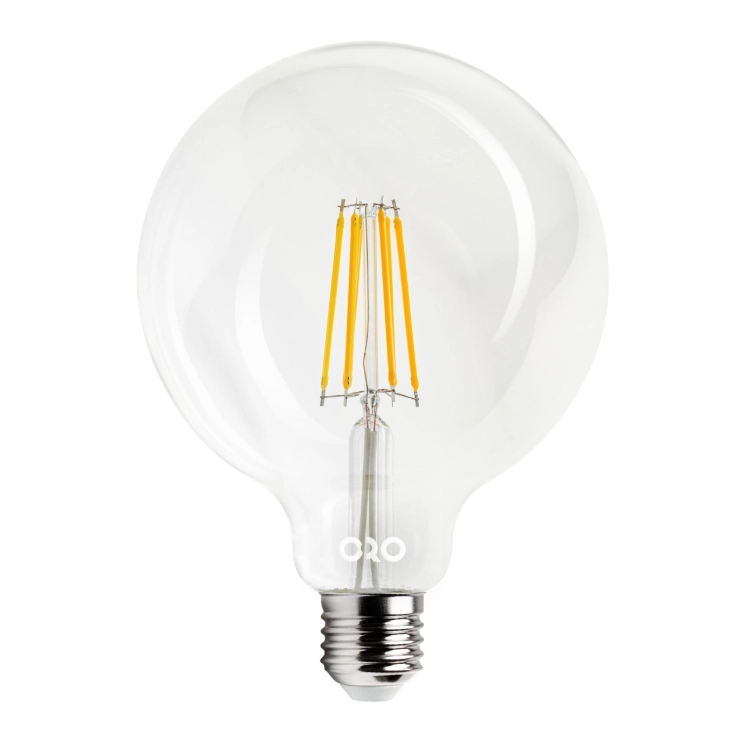 Stylowa żarówka LED ORO CLARO E27 G125 to połączenie nowoczesnej technologii LED z klasycznym, dekoracyjnym wyglądem. Dzięki dużej, kulistej bańce G125 oraz widocznym filamentom doskonale sprawdza się jako element ozdobny w lampach wiszących i otwartych oprawach.