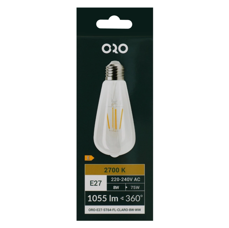 Połączenie klasycznego wyglądu z technologią LED sprawia, że ORO CLARO ST64 jest nie tylko funkcjonalnym, ale również dekoracyjnym elementem oświetlenia wnętrza.