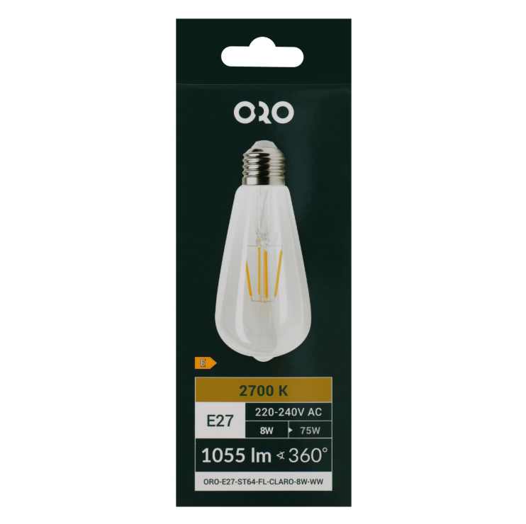 Połączenie stylowego designu i technologii LED sprawia, że ORO CLARO ST64 jest nie tylko praktycznym źródłem światła, ale również elementem dekoracyjnym podkreślającym charakter wnętrza.