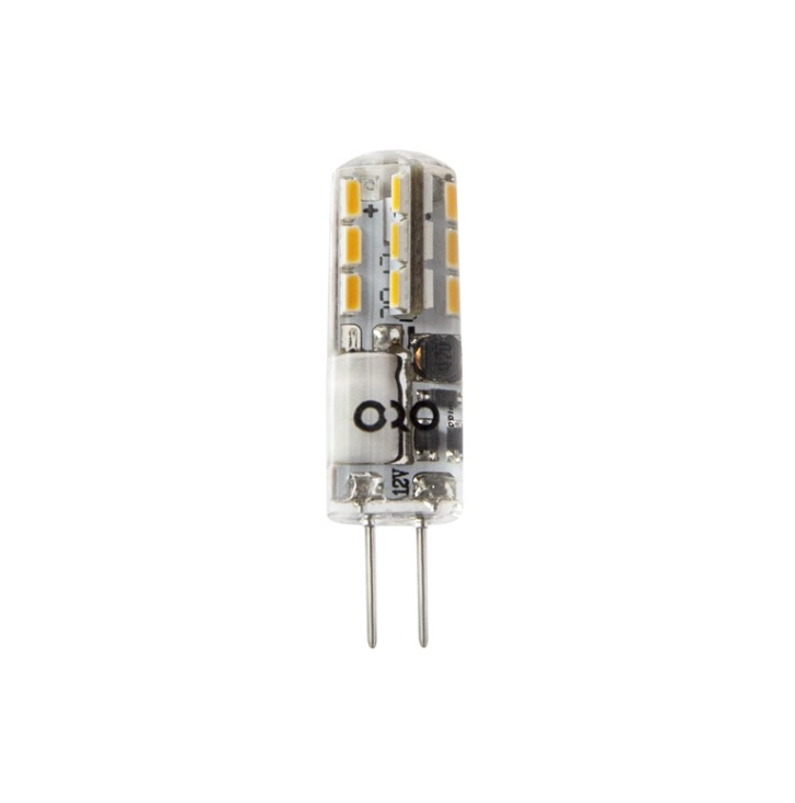 Żarówka LED 1,5W ORO-G4-OLI-1,5W-BC 100lm 2700K LED-POL to miniaturowe źródło światła o mocy 1,5W z trzonkiem G4. Mogą zastąpić tradycyjne halogeny małej mocy. Niewielkie rozmiary to niewątpliwie zaleta tego źródła światła. Idealnie sprawdzi się tam, gdzie brakuje miejsca na tradycyjne żarówki. Potrafią doskonale oświetlić różnego rodzaju wnęki, półki, blaty itp. Żarówka ORO-G4-OLI-1,5W-BC emituje zimne białe światło, strumień świetlny wynosi 100lm. Technologia LED, w której została wyprodukowana pozwala na znaczne oszczędności finansowe a przy tym ma korzystny wpływ na środowisko naturalne. Nominalny okres trwałości lampy to aż 15000h a liczba cykli włącz/wyłącz wynosi 20000.