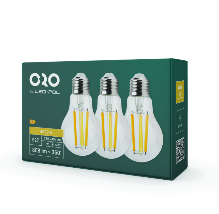Żarówki led filament ORO 3XE27 A60 FL 7W WW ORO33106 LED-POL