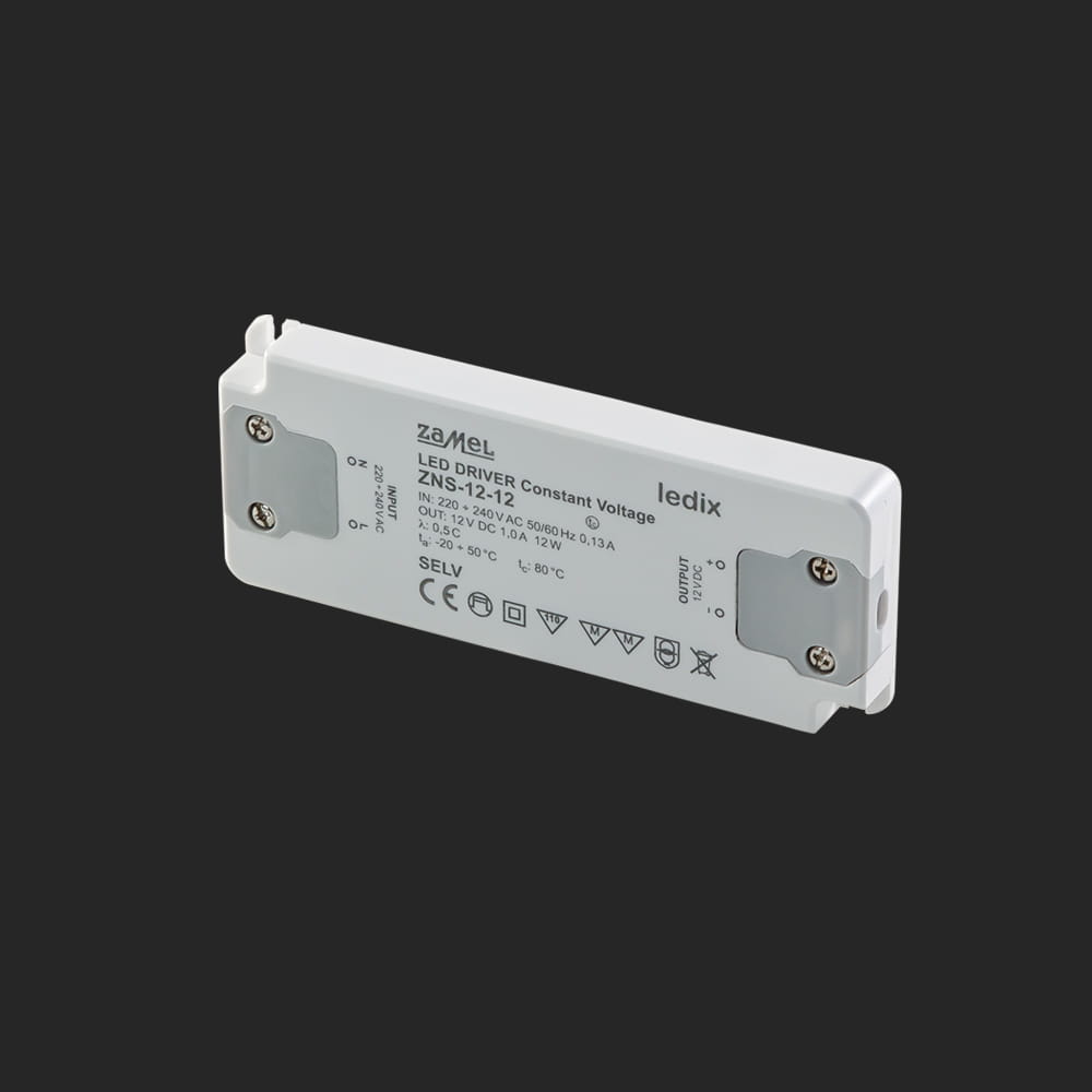 Zasilacz impulsowy ZNS-20-12 przeznaczony jest do stosowania w domowych instalacjach oświetlenia LED. Modułowa konstrukcja umożliwia łatwy i wygodny montaż do powierzchni poziomych jak i pionowych wewnątrz pomieszczeń. Zasilacz charakteryzuje się napięciem wyjściowym 12 V DC i mocą wyjściową 20 W. Wbudowane zabezpieczenia gwarantują nieprzerwaną i niezakłóconą pracę wszystkich podłączonych elementów LED.