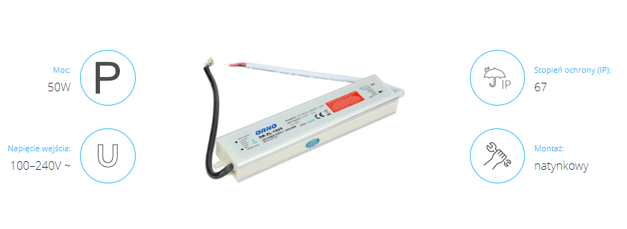 Zasilacz do LED 12VDC 50W, IP67 OR-ZL-1605 ORNO