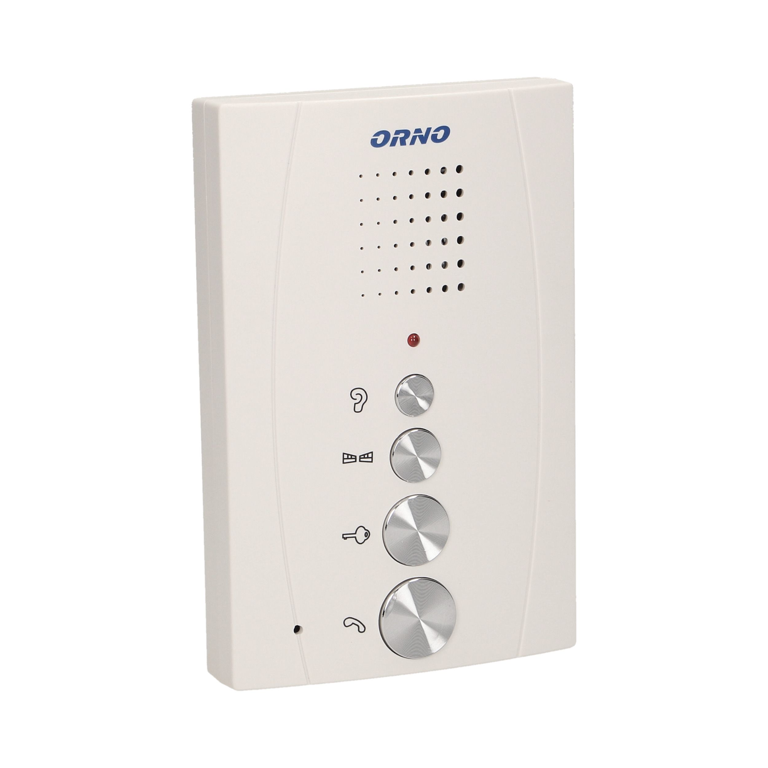 Nowoczesny, bezsłuchawkowy domofon z interkomem w eleganckim białym kolorze marki ORNO, idealny do domu jednorodzinnego. Umożliwia wygodną komunikację z osobą przy wejściu i wewnątrz domu bez potrzeby użycia słuchawek. Prosty montaż i intuicyjna obsługa zapewniają komfort codziennego użytkowania.
