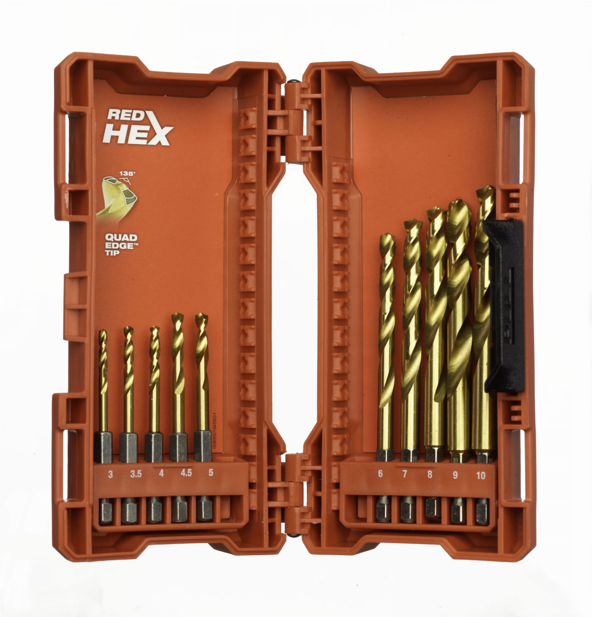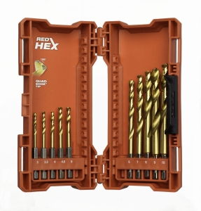 Wiertła Shockwave HSS-G TiN RED HEX - zestaw 10 sztuk: Ø 3 / 3.5 / 4 / 4.5 / 5 / 6 / 7 / 8 / 9 / 10 mm