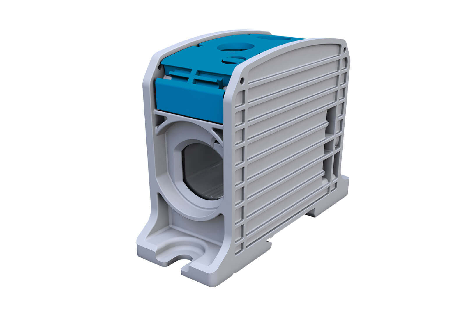 Jednobiegunowa złączka do przewodów aluminiowych i miedzianych o dużym przekroju. Gwintowy zacisk zapewnia trwałe i pewne połączenie.