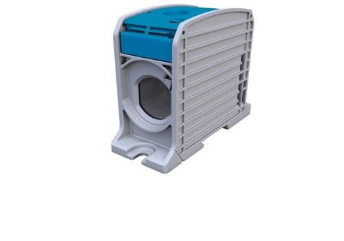 Jednobiegunowa złączka do przewodów aluminiowych i miedzianych o dużym przekroju. Gwintowy zacisk zapewnia trwałe i pewne połączenie.